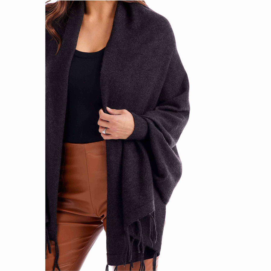 Our stunning Charcoal Cardigan Wrap is the perfect fashion staple for the stylish Fall season. Crafted from a premium poly blend knit, this glamorous cardigan wrap exudes elegance and comfort. With its convenient sleeve openings, you can easily slip into this piece and embrace the warmth it provides. The cardigan boasts a trendy tassel hem, adding a touch of sophistication to your ensemble. Designed to accommodate most body types, this versatile cardigan is available in one size. It measures approximately 32" from shoulder to hem, ensuring a flattering fit for a range of individuals. Made from a high-quality blend of 48% Rayon, 30% Polyester, and 22% Nylon, this cardigan offers both durability and softness. For easy care, simply machine wash it on cold with like colors and lay it flat to dry.