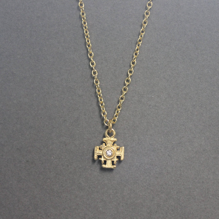 Cross Pearl Link & Chain Necklace with CZ Accents