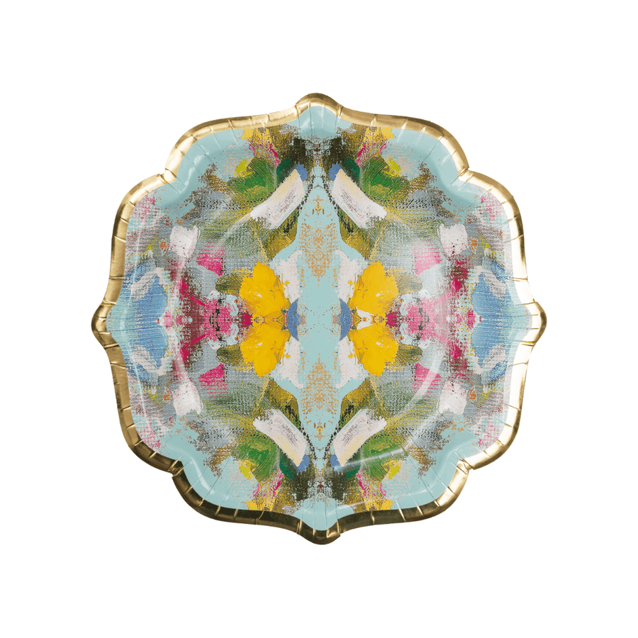 Disposable paper plates (cocktail size) - 9"" x 9"" Round - Features a gold scalloped edge - Sold in a pack of 10