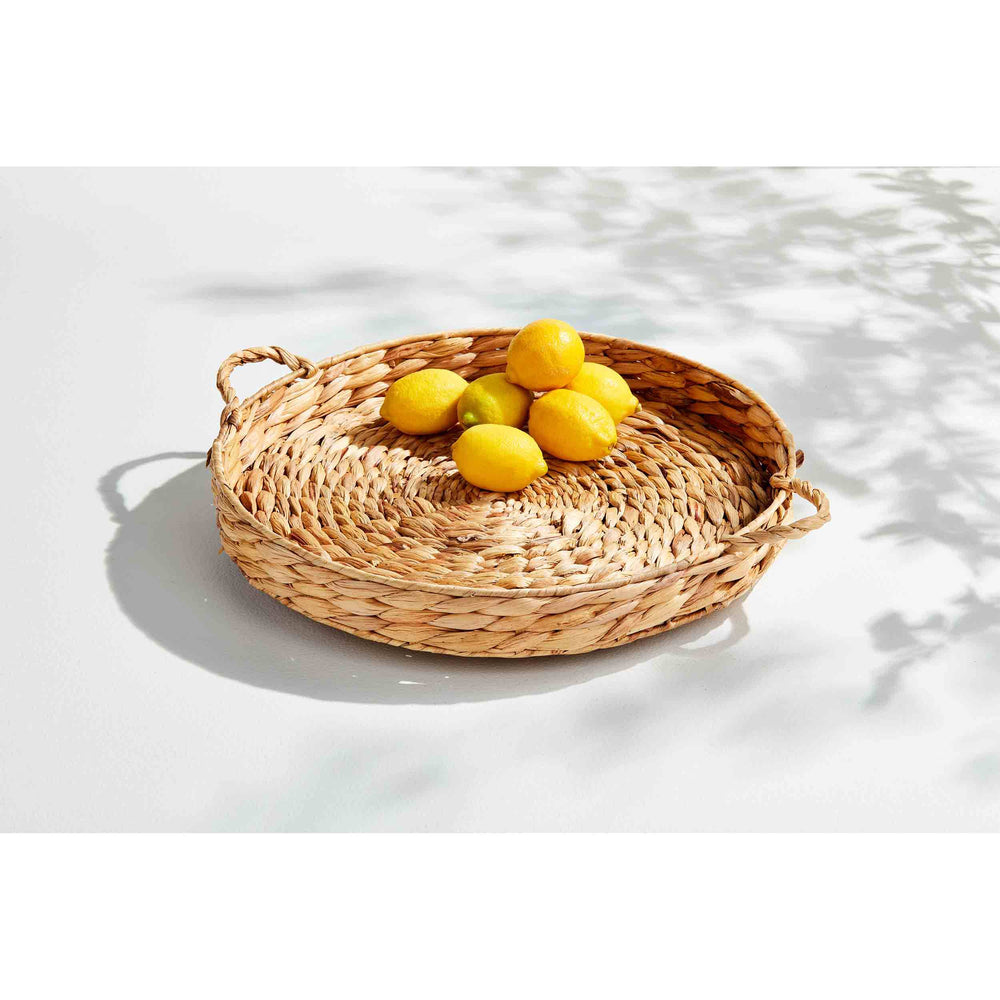 This Woven Lazy Susan is a basket and spinning lazy Susan in one. The Lazy Susan features side handles. The lazy Susan features a detailed woven water hyacinth pattern. Not only is this the perfect table top basket, this lazy Susan spins for the perfect dinner table accessory.