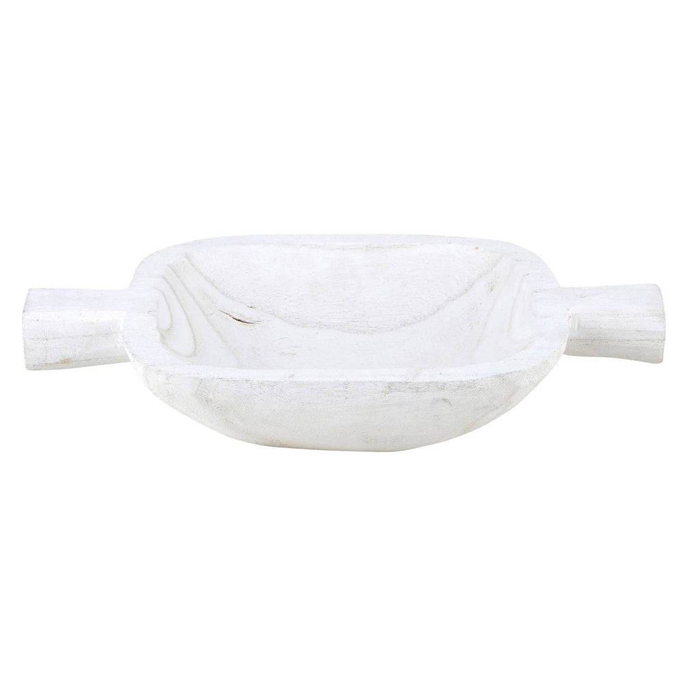 This bowl made of durable Paulownia wood can be used in the kitchen or as home décor. Great as a centerpiece for layering candles or as a serving tray when entertaining family and friends. Now available in white to seamlessly fit into any home.